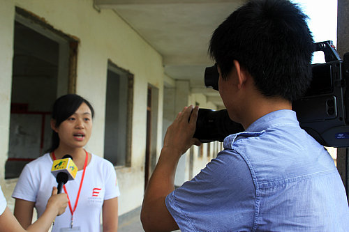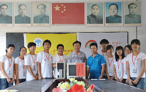 本网讯 7月22日,我校与梅州大埔县枫朗镇广德小学共建社会实践基地签约仪式在广德小学会议室举行。广德小学校长魏水强、枫朗镇中心小学副校长罗龙副等出席了本次会议。会议上,两校签订了《广外南国商学院与广德小学共建社会实践基地协议书》。魏水强代表广德小学接收了我校捐赠的10台电脑。大埔电视台全程报道并采访了我校志愿者。