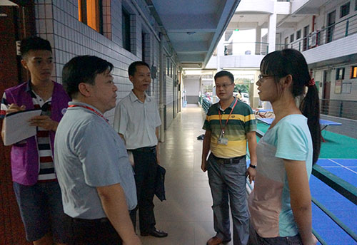 赖志立亲切询问新生对学校满意状况,是否了解军训期间时间安排,并向家长介绍了学校宿舍的规模和硬件设施。在走访的过程中,赖志立得知有一位来自安徽省的新生,他希望他尽快融入南商这个大家庭,习惯广东的生活习惯,并希望舍友们能够多帮助、照顾他。