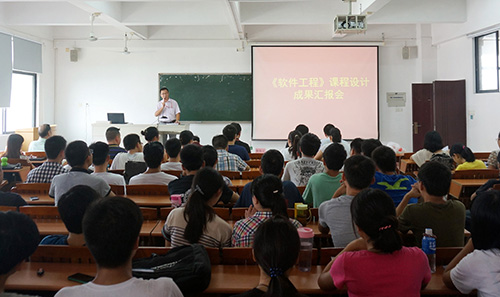 信息科学技术系主任朱子江总结了信科系近一年来的实践教学工作,并介绍了上学期开展《软件工程》课程设计的相关情况。授课教师朱贵良教授从“为什么要进行《软件工程》课程设计”、“如何进行课程设计”、“课程设计取得的成绩”和“不足与展望”等4个方面对《软件工程》课程设计情况进行了总结发言。
