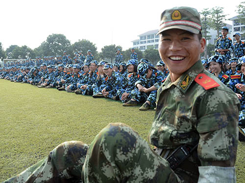 【编者按】一年一度的军训,即将接近尾声,12天的军训,有欢笑,有泪水,有晒黑的脸和手臂,还有一份烈日下一起成长的情谊。 (图/林灿然 夏焕怡 梁宝瑜)