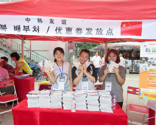 本次韩国周“韩国文化盛宴”活动包含丰富多样的中韩文化表演、韩国文化体验活动及韩国美食一条街。朝鲜语系40余名学生在活动现场担任志愿者,维持现场交通秩序,管理表演场地,护送公演明星入场离场,发放活动宣传优惠券,协助韩国商家进行义卖等等。我校“Three two one”舞蹈组合参加了中韩才艺比赛,曲目编排新颖,深受现场观众的喜爱。