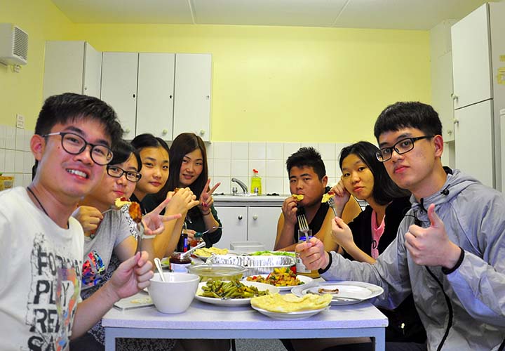 在生活上,同学们住在学校的公寓里,六人间的大寝室,每个人在大房间里还有独立的单间寝室。由于同学们平日里都是娇生惯养的孩子,到了英国之后也一个个拎着袋子买菜,举着大刀剁肉,端着锅,拿着铲,一副将革命进行到底的光辉形象。在国外的这一个月,最让周冠雄体会最深的就是父母的辛苦和不易。“当我们这些‘厨子’手上留下几块厨师印章,切到手、被热锅热水烫过痛过后,所有人都会在心底对父母说声谢谢。”