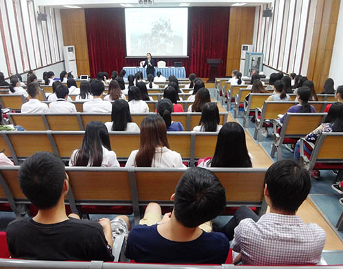 管理学院辅导员何思萍老师希望同学们把《弟子规》当成生活的一面镜子,学习其中做人做事的方法。 (管理学院 何应贤 何思萍)