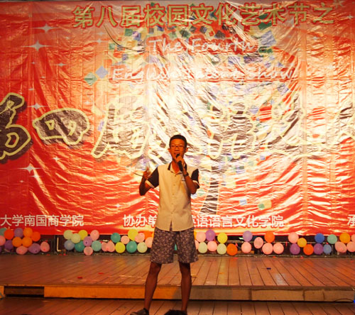 本网讯 10月21日晚上,由英文学院举办的第四届英语达人秀决赛在商业街隆重举行。副校长王心洁与英文学院的师生一起观看了表演并致辞。