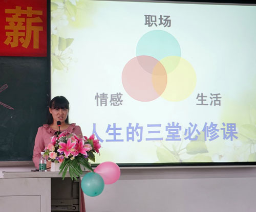 王淑名步入婚姻殿堂将近5年,讲座中,她以自己的“懵懂时期”、“大学时期”和“成熟时期”的三段情感经历指导同学们如何理性地处理情感问题。她建议大家要学会换位思考,学会信任和分享,做一名独立大方、底线明确的大学生。