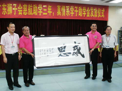 本次有30名学生获得广东狮子会慈航助学金资助,每人2000元,共6万元。选拔条件除要求受资助学生品学兼优外,还要求他们在受助期间,累计完成50工时的志愿服务工作。