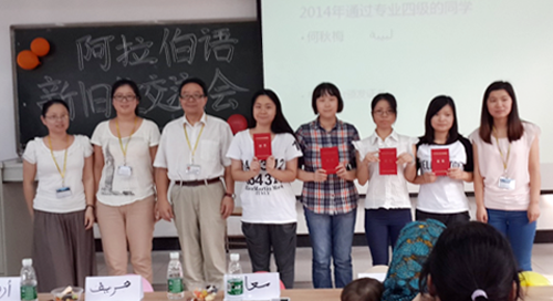 本网讯 近日,东语学院阿拉伯语系在F502举办了新生交流会暨阿拉伯语专业四级证书颁发仪式。阿语系主任杨建荣教授、阿语系老师以及阿语系学生参加了本次活动。