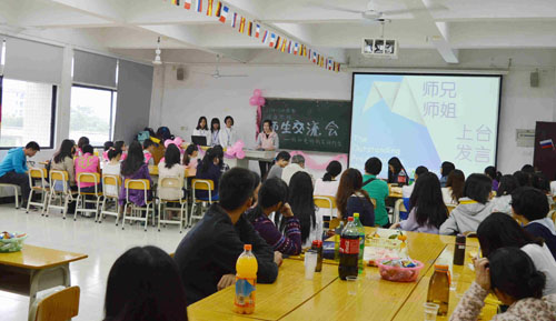 优秀校友通过视频的方式分享了他们的学习和工作经验。2012级的优秀学生代表也上台为师弟师妹们分享他们日常学习与备考专业四级的经验。在师生自由交流环节,师生们就专业学习、校园生活、出国交流等方面进行交流,大家畅所欲言,相谈甚欢。