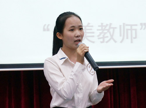 经过各院系初赛选拔,共有7组选手晋级决赛。每组选手在规定的7分钟内,通过PPT加以辅助进行演讲。其中来自中国语言文学系的温颖珊同学以身边小事为例,为观众讲述了当代大学生如何用实际行动践行核心价值观;东方语言文化学院郭子莹、林晓根同学讲述了如何做正能量的传播者;国际经济与金融学院张婉薇同学朴实有力的语言赢得了现场观众热烈的掌声。