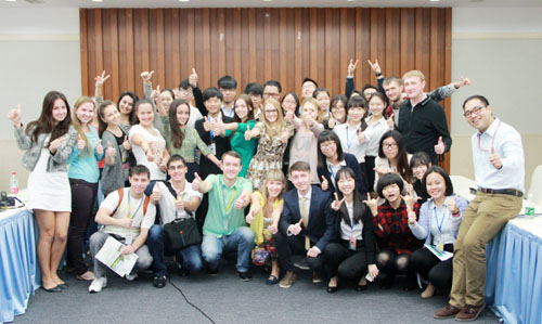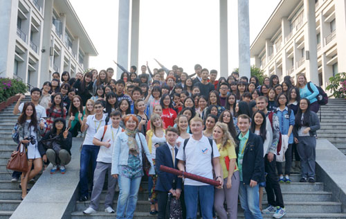 俄罗斯师生与我校俄语专业的学生合影留念 (陈晓韵 摄)