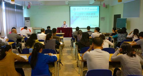 随后,学生处处长吴锦德以“做一只高飞的领头雁——辅导员职业素养与职业能力培养”为主题开展讲座。他从不同年代学风状况的差异谈起,强调了辅导员在培养学生家国天下情怀、建立并实现梦想等方面发挥的不可替代的重要作用。同时,在培训过程中他采用了大量的学生工作实例,指出辅导员要有全局观念和大局意识。在谈到辅导员工作的基本原则和方法时,吴锦德说,辅导员要关心关注学生学习的艰辛、成长的烦恼、理想的困惑、择业的焦灼,积极与学生进行思想沟通和交流,运用谈心式的教育方法,为学生指点迷津,共同做好学校的人才培养工作。