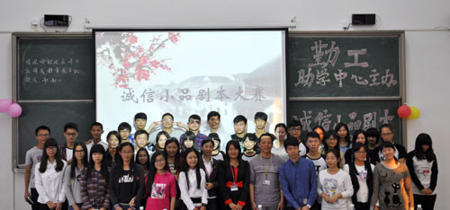 本网讯 近日,由学校勤工助学中心主办的“诚信为本,精彩人生”的诚信小品剧本大赛决赛在C502举行。