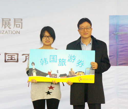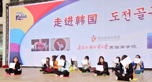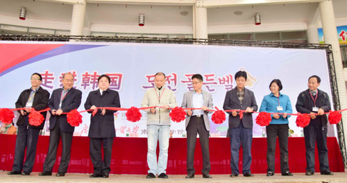 本网讯(记者 戴诗杰 实习记者 吴歆瑶)12月2日,韩国文化周之“走进韩国”知识竞赛在商业街举行。党委书记黎冬,副校长赖志立、王心洁,韩国旅游发展局局长郭尚燮出席比赛并为韩国文化周活动剪彩。