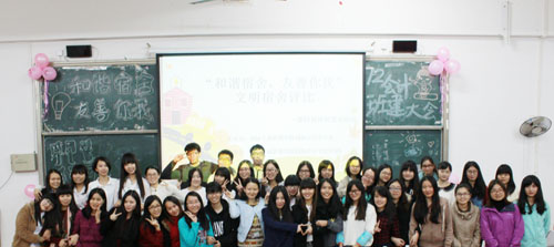 本网讯 12月3日,国际工商管理学院在教学楼C301举行“和谐宿舍,友善你我” 文明宿舍评比活动暨2012级会计专业第四届班级建设交流大会。