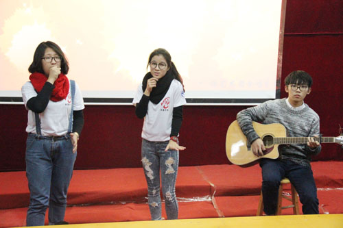 本网讯(实习记者 林峰 陈烁烁 黄佳玲) “欢乐女神圣洁美丽,灿烂光芒照大地”,合唱团员用铿锵有力的歌声,以贝多芬的《欢乐颂》拉开了音乐会的帷幕。12月16日晚,校艺术团合唱团在C301举行了我校首届音乐会。