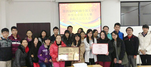 本网讯 近日,我校国际经济与金融学院学生在第四届POCIB全国大学生外贸从业能力大赛中,荣获团体一等奖,12名学生分别获得个人一、二、三等奖,许健上、夏海霞获指导老师一等奖。