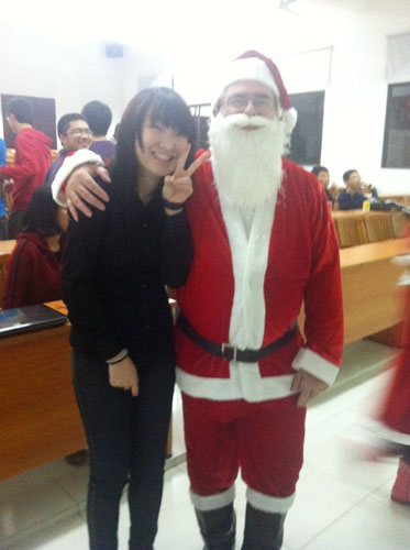 寒冬12月,我们的校园却拥有一个温暖的缤纷圣诞气氛。也许对于很多的中国人来说,圣诞节并不意味着家里的圣诞树和餐桌前的团聚,而是商场的减价大采购,或者仅仅只是一个西方的节日。很多时候节日早已超越它本身该有的价值,人们只是需要一个日子让我们有机会与身边的人一起营造一个快乐的氛围,同时让我们以一种独特的方式去迎接新年的到来。 (记者 钟秀南 蒋妍静 伍芷琳 陈雅靖)