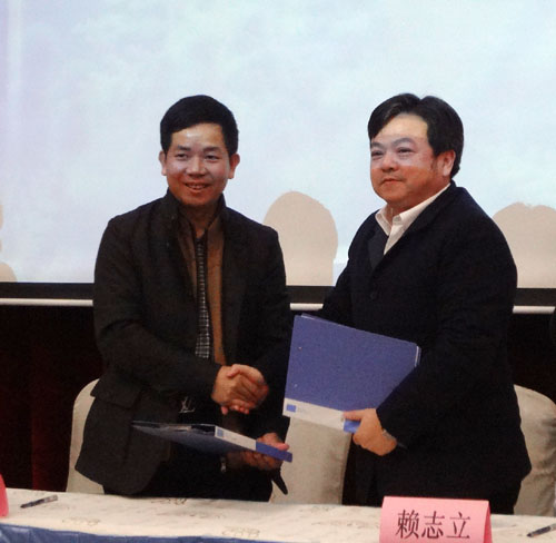 随后,在经济学院师生的共同见证下,赖志立与欧南雄分别代表我校与广州岭南国际电商产业园在合作协议书上签字。