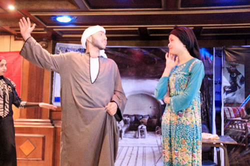 我校学生(右)与埃及学生合演话剧《一块面包》