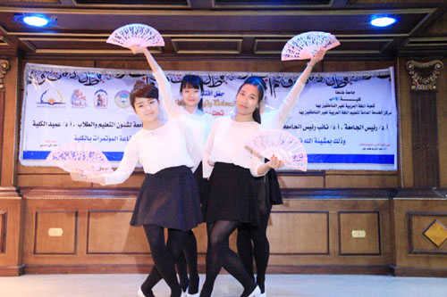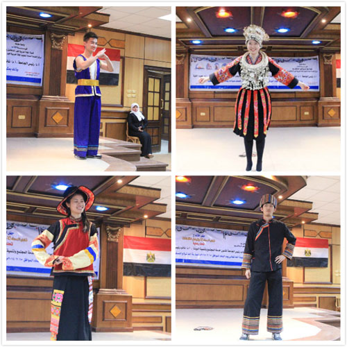 经过将近一个月的辛苦排练,由我校留学生表演的话剧《一块面包》、华尔兹、歌唱和民族服装展示等节目获得了大学师生的喝彩。服装是一个民族文化最能体现的载体之一,我校学生牵手埃及学生带来了一场精彩的服装表演,向在场的观众展现了两国传统的民族服饰以及日常的服装,既让大家感受到了文化的多样性,也让大家领略到了民族服饰的精美独特。优美高雅的华尔兹群舞、动听的英文歌曲独唱都获得了观众的喝彩和掌声。我校学生不仅向埃及的师生展示了中国文化的源远流长和辉煌灿烂,也向他们展现了中国人友好热情的一面。