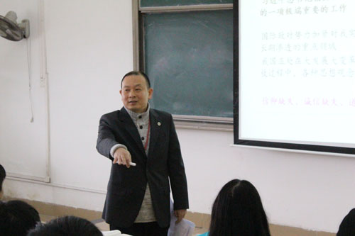 黎冬上《形势与政策》课(林楠 摄)