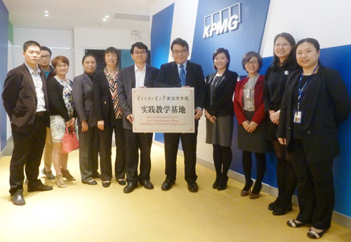 随后,双方就人才培养及教学改革,共建实践教学基地及企业专家到校指导教学实践等方面进行商议,并达成一致。“广东外语外贸大学南国商学院实践教学基地”在毕马威全球商务服务(广东)有限公司挂牌成立。