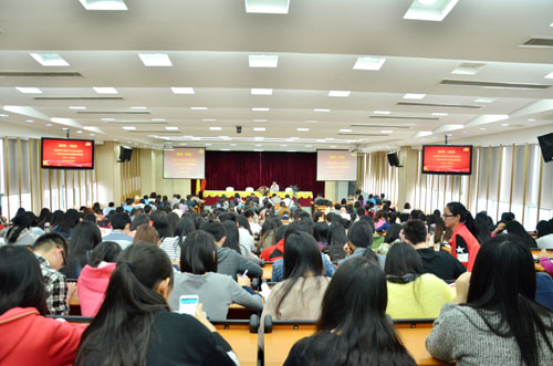 本网讯(记者 纪乙欣)3月24日下午,“聚焦·两会”党委中心组(扩大)学习会议在C201学术报告厅召开。全国政协委员、学校督学顾也力教授为全体教工党员、学生党员代表解读2015年全国两会精神。党委书记黎冬出席并主持了会议。