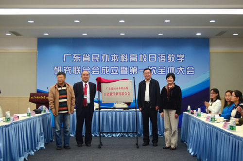 在与会人员的共同见证下,广东省民办本科高校日语教学研究联合会正式揭牌成立。