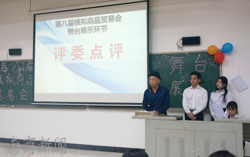 本网讯 近日,国际工商管理学院第八届模拟商品贸易会之舞台展示环节活动在G106开展。美国BNI广州天河盈丰分会会员吕允晔、中国雕刻大师卢建华、广州邦聘教育机构执行总裁吴卓卡等校外专家应邀出席活动。