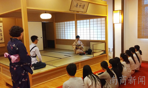 茶室负责人杜凡详细地讲解日本茶道文化。她说茶道讲究回归本源,能为客人提供眼、耳、口、鼻、心之享受,通过一壶茶,客人和主人之间能够产生“心之交流”。除此之外,她还介绍了各种茶道用具的名称、历史、功能以及在榻榻米上行走时的步伐节奏、技巧等。