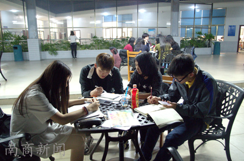 我校图书馆为了能够让学生们更多地在学习上交流,培养他们的合作学习能力,让学生们在图书馆休闲区开展了语言学习小组,希望能让学生做到表达和倾听并重,自学和沟通同行,取得更佳的学习效果。韩语、西班牙语、阿拉伯语、日语、德语、俄语和法语等专业相继在图书馆建立了自主学习小组,并定期举行活动。