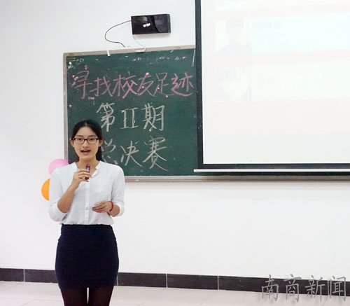 本期校友足迹项目自2014年11月启动,历时近半年。10支团队过五关斩六将,最终在决赛场上一决高下。各参赛队伍以不同方式分享了寻访校友的成果与收获。“南国四大名捕”队以抓“范人”为切入点进入主题,揭秘2005级信息科学与技术系校友练立新的“范儿”故事;“铿锵五人行”队用童话来解读“晖姑娘”,讲述了2009级中文系校友谢庆晖与“微蜜蜂”俱乐部的情缘;“蒸馏蘸蟹菜”组以情景模拟的形式,讲述了2011级中文系校友杨婓雄“左手公务员右手研究生”的传奇故事。