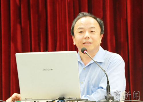 本网讯 4月23日下午,暨南大学翻译学院林巍教授应邀来校进行学术讲座。讲座以“韩素音青年翻译奖评析”为主题,副校长王心洁与英语语言文化学院师生一起聆听了讲座。