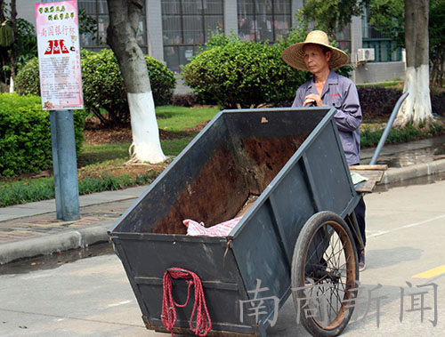 早上,阿叔就要到处运送这个手推车了。