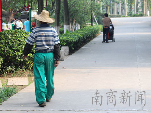 众阿姨围坐在一起,面对记者提出了为他们一起拍照的请求时,阿姨指向远处的这位大叔,玩笑说道:“这位大叔最勤奋的,你去给他拍拍!”然而大叔却躲过了我们的镜头,当镜头对准他时,他随即转身,只留下一个令人遐想的背影。