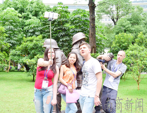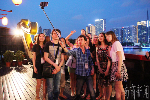 合唱团的朋友除了对广州的景点十分感兴趣,还特别热爱自拍。用“无所不在的自拍”来形容他们是最恰当不过的。每到一处,他们总会拿出“自拍神器”合影留念。每当记者的相机对准他们时,他们总会热情大方地微笑着接受拍摄,十分友好。有时候还会要求看一看相机里的照片,然后就会竖起大拇指,微笑着道谢。