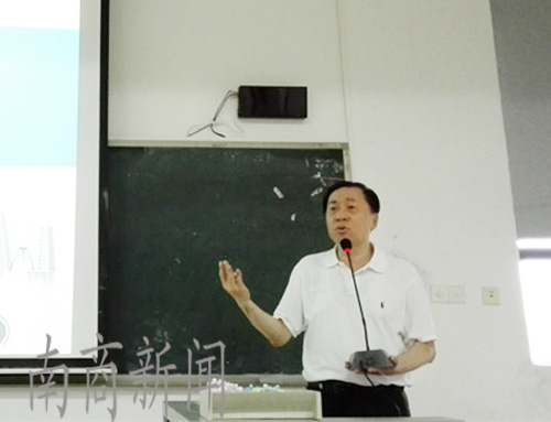 谈到如何践行社会主义价值观,陈岸涛从个人、社会、国家等3个方面阐释了践行社会主义核心价值观的重要性。他由最近世界反法西斯战争胜利70周年的纪念活动入手,对战败国日本和德国国力进行了分析,强调国家文化对国力的影响。同时,他以最近的时事热点“一带一路”、亚投行和大学生创业等实例强调树立社会主义核心价值观的重要性,希望同学们更好地理解社会主义核心价值观的内涵。 (中文系 王怡颖 杨柳 招海燕)