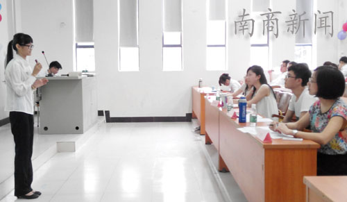在教师提问环节。评委老师围绕产品提出各种问题,选手灵活应对。师生互动,气氛时而紧张时而轻松。最后,吉媛凭借精彩的表现获得一等奖,劳冰涛获得最具潜力奖。 (英文学院 易玲 吴金玲 陈惠斯)