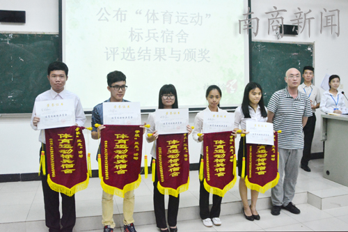 本网讯 近日,我校开展以“学以厚德、体以健魄、育南商人”为主题的“体育运动与学习型”标兵宿舍创建活动。6月2日,评比活动在G101举行。