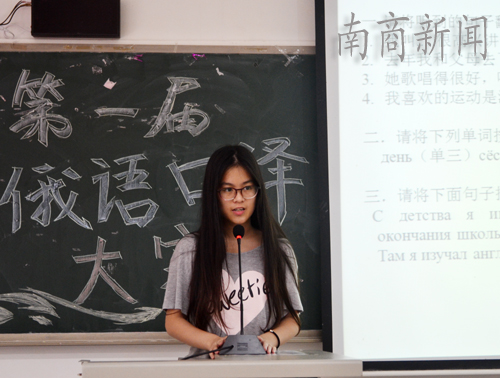 本网讯 近日,西方语言文化学院首届俄语口译比赛在F106举行。2014级俄语专业全体学生参加比赛。俄语专业中外籍教师担任评委。王莹芳同学获得比赛一等奖。