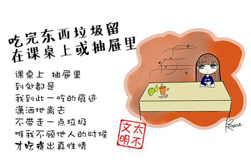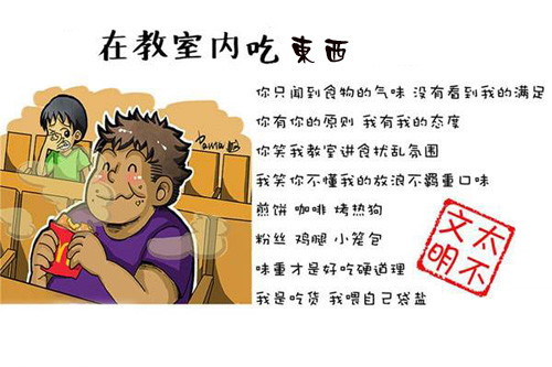 近年来,大学生的不文明行为越来越引起社会热议,让一些人看来,直呼大学生素质降低。下面这组漫画盘点了众多大学生校园不文明行为,其中是否有你的身影?