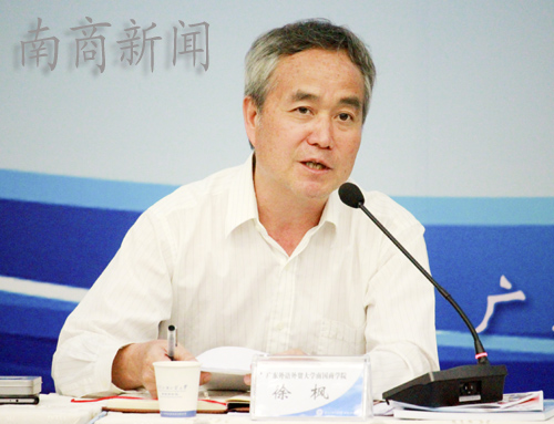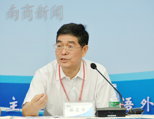 徐真华致辞。他代表南商向专家、学者和嘉宾的到来表示热烈欢迎和衷心感谢。徐真华介绍说,南商目前设有10个外语专业,是广东省外语专业最多的独立学院,以“通基础、精专业、强外语、重实践”为人才培养模式,致力于培养思想素质高、专业水平高,跨文化交际能力强、信息技术运用能力强的“双高两强”的应用型、复合型、外向型人才。南商法语语言文学专业筹建于2007年,并于2008年开始招收首届本科生,目前在读学生240余名。至今已培养出两届法语本科毕业生共180人。