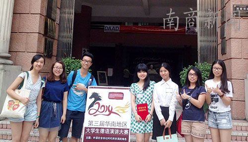 周悦同学(右四)获第三届华南地区大学生德语演讲比赛一等奖 (资料图片)