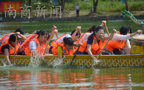 袁长青为开幕式致辞。他说,赛龙舟是一项具有爱国情怀、人文精神的民族体育运动,体现了中华民族同舟共济、团结拼搏,奋勇争先的精神,同时也是中华民族的文化和历史的象征。龙舟比赛最让人心动的是执着和竞争,只有整个集体的齐心协力、默契配合和动作协调才能产生最佳协力。他希望龙舟精神能感染南商每一位师生员工,并将此打造成为我国的校园文化品牌。最后,他预祝龙舟赛能取得圆满成功,同时也预祝全校师生端午节快乐。