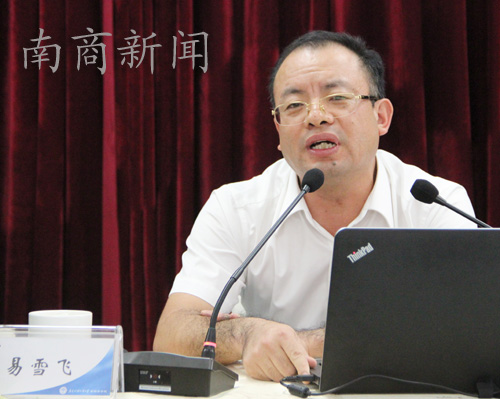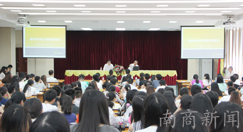 本网讯(记者 陈文婷)6月23日下午,广州农村商业银行行长易雪飞一行来我校讲学,讲座题目是“国内商业银行当前实务概况”。我校校长徐真华教授出席讲座。国际经济与金融学院师生聆听了讲座。