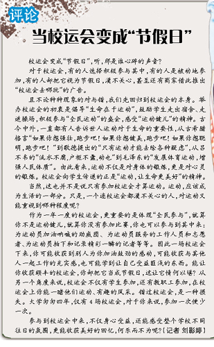 二等奖:第75期3版-评论《当校运会变成“节假日”》(刘影婷)