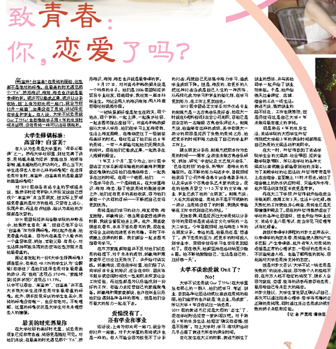 通讯类三等奖:第74期3版-通讯《致青春:你,恋爱了吗》