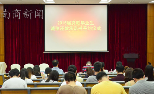 本网讯(记者 钟秀南) 6月25日,我校在学术报告厅F101举行了2015届贷款毕业生诚信还款承诺书的签约仪式。党委书记黎冬出席仪式。