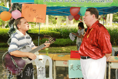 英文学院的外教吉他弹奏中英文歌曲 (吕浩辉 摄)