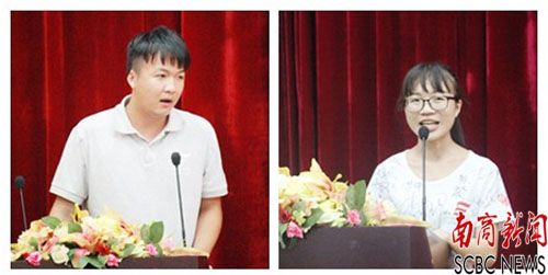 优秀团队获奖代表肖嘉明分享了参加“三下乡”的感受。他认为参加“三下乡”活动,既帮助了别人也帮助了自己,在支教活动中他深刻地体会到初为人师的喜悦,他希望把最好的东西带给孩子们,“‘三下乡’活动更像是一场爱的接力赛,通过每年的队伍接力,把爱播撒在更长久的未来”。优秀志愿者代表廖锦珠分享了自己当一年级代理班主任的经验,讲述了小朋友给她带来的烦恼和与其他志愿者协同解决问题的历程。她说,“三下乡”收获的不仅是爱也是一份美好的回忆。